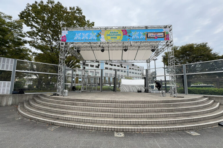 先日、浦安市内でハワイアンイベントが行われました! そちらのステージ設営をお手伝いしました! ステージに取り付けているバナーのデザインも担当しています。 弊社は屋外や屋内に関わらず、季節に合わ…