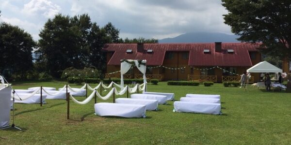 いつもはテントの設営のみというのが多いのですが、今回は装飾まで