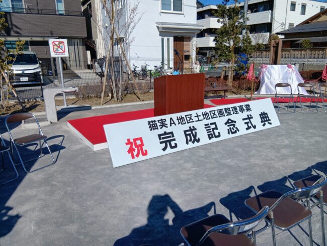 先日、浦安市内で整備地区の完成記念式典が行われ、会場設営のお手伝いをさせて頂きました。 表彰式が行われ、記念碑パネルの除幕式も行いました! 除幕式の後は、公園の名前にちなんで記念碑の周りに参加者の皆様で、すみれを植樹して…