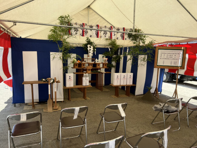 先日、町田市で地鎮祭のテント設営を行いました! 出席者も多く、密にならないようにテントを2張立てて対応しました。 敷地や出席者に合わせてさまざまなサイズのテントをご提案させていただきます。 弊社では、地鎮祭…