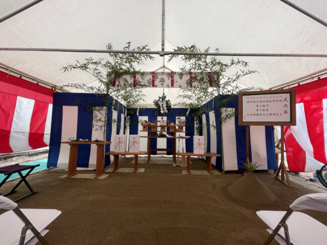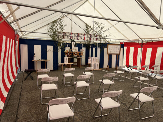 先日、町田市で地鎮祭のテント設営を行いました! 出席者も多く、密にならないようにテントを2張立てて対応しました。 敷地や出席者に合わせてさまざまなサイズのテントをご提案させていただきます。 弊社では、地鎮祭…
