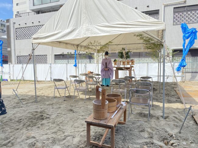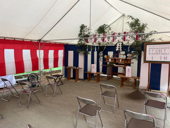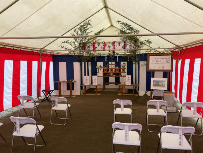先日、練馬区にて地鎮祭のお手伝いをさせていただきました! 紅白幕の下を空けて換気を良くするなど、コロナ対策にも配慮した設営を行いました。 弊社では、地鎮祭や竣工式で使用する祭壇や紅白幕、テントなどの必要機材…